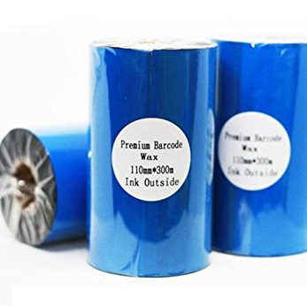 Caja con 20pz de ribbon de resina de 110×300 metros de longitud, compatible con impresoras semi industriales e industriales.